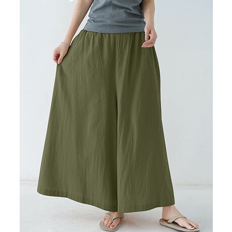 ウエストはゴム仕様、両サイドにポケット付きで、毎日にうれしい使い勝手の良さ