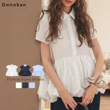 【Donoban】ハーフスリーブフラワービジューブラウス