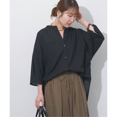 さらりとした肌触りが心地よいバンドカラーシャツ。