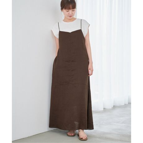 華奢な肩紐とシンプルなラインが大人っぽく、裾にかけて自然に広がるシルエットが抜け感を演出。