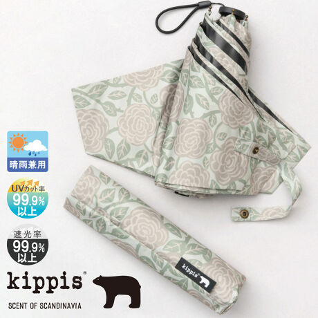 暖かみのあるモチーフや洗練されたカラー使いのテキスタイルデザインが魅力の北欧ブランド“kippis(キッピス)”の、晴雨兼用折り畳み傘。近年の猛暑や、美容の観点から通年必需品になりつつあるアイテム。デザイン性だけでなく、遮光率99.9%以上、UVカット率99.9%以上、遮熱効果も期待できる、日焼け対策、暑さ対策の面で充実の機能性を完備!裏面のブラックコーティング生地が照り返しを吸収してくれるため、地面からの照り返しによる日焼けにも抜かりなく対応。スマホと同じくらいの重さの軽量タイプで、普段の持ち歩きの際の負担を軽減。お天気が不安定な日にも安心な、晴雨兼用折り畳み傘は毎日の持ち歩き用に便利◎