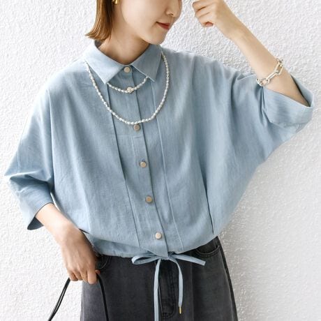 薄手で柔らかなデニムライク素材で五分袖なので春〜秋まで長いシーズン着回しができます。