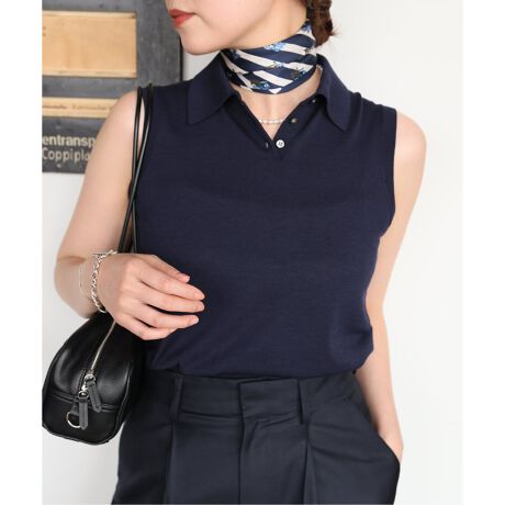 シルクの上品な光沢と、コットンの扱いやすさを兼ね備えたポロノースリーブニット。