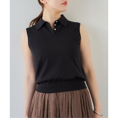 シルクの上品な光沢と、コットンの扱いやすさを兼ね備えたポロノースリーブニット。