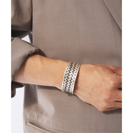 手作業でシルバーを編み込んだ、非常に手の込んだバングルは、左右でバングル幅が異なり存在感があります。