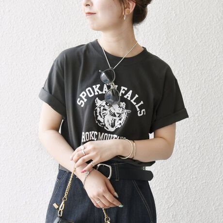 ジャケットやスカートとも好相性で大人っぽく着れるロゴTです。