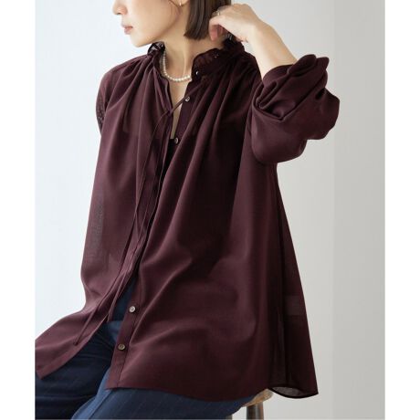 きれいめにもモードにも着まわせる、大人のための華やぎブラウスです。