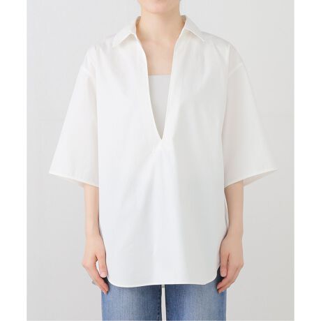 深めに開いたスキッパーデザインは、インナーとのレイヤードが映える設計。