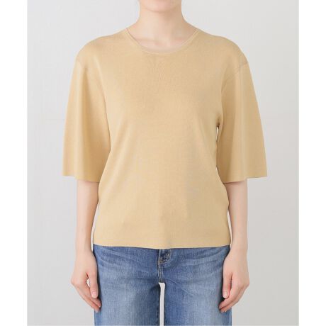 コットンシルク素材をしっかりとした総針で編み立てた、Tシャツ感覚で着られる五分袖ニットです。