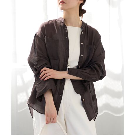 程よいシアー感が涼し気なバンドカラーシャツ。