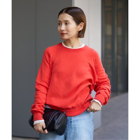 スウェット型のカジュアルなデザインを、柔らかな肌触りのニットで大人っぽく表現しました。