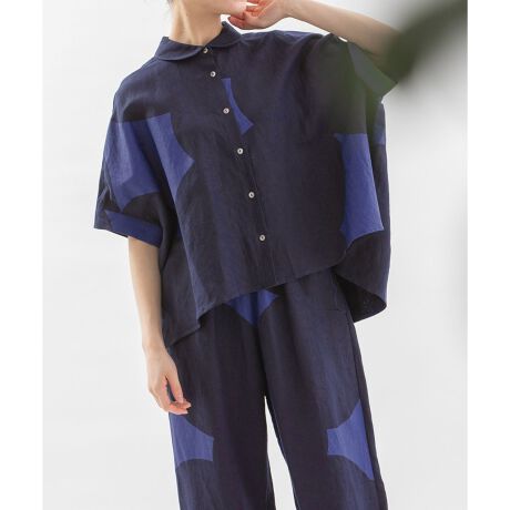 Cielリネンレーヨンもくもくプリントシャツ