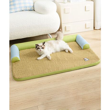 ふちに囲いがついているので、ワンちゃんネコちゃんが安心してくつろげるペット用ソファマットです。