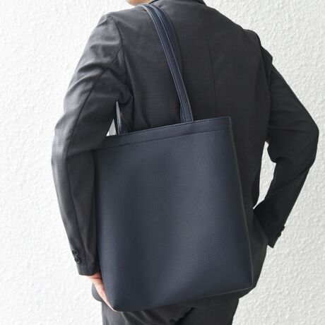 普段使いからビジネスシーンまで使用可能なシンプルデザインのトートバッグ