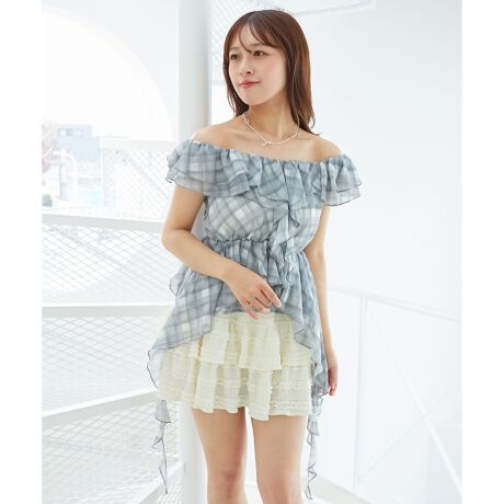 アシンメトリーフリルが動きのあるシルエットを生み出します。