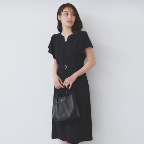 《S-3Lサイズ》フリルスリーブワンピース【洗濯機洗い可】