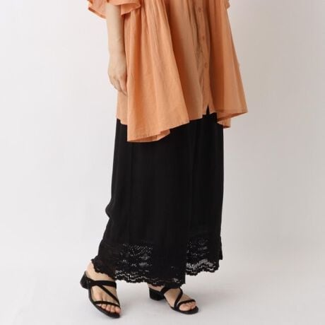 綿麻レーヨン ロングレース 切替ペチパンツ