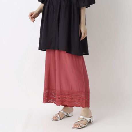 綿麻レーヨン ロングレース 切替ペチパンツ