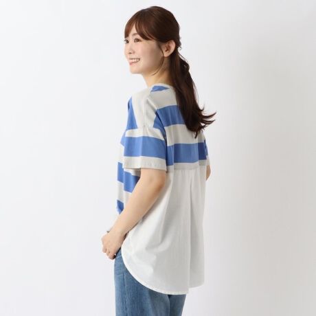 ◆コットン天竺ボーダー布帛切替プルオーバー