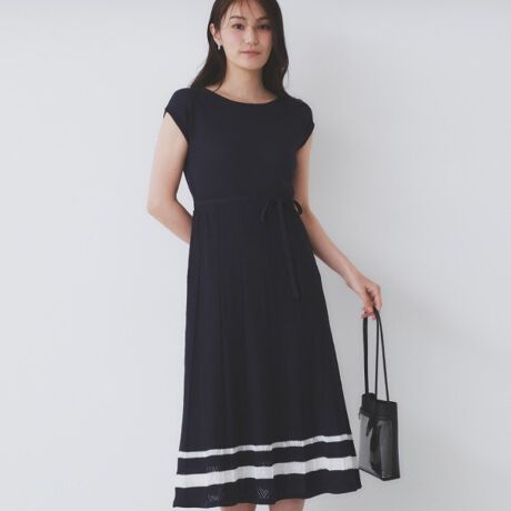 ・エレガントなシルエットとボーダーラインが特徴のニットワンピース。