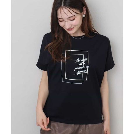 ゆったりシルエットで一枚でも、インナーとしても着やすいTシャツです。箔プリントのフレームロゴがカジュアル過ぎず、大人でも取り入れやすいロゴTシャツです。定番の白とブラックに近いネイビーと、どちらも着回しできる色味なので、2色持っていても損はないと思います。