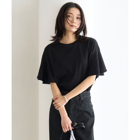■デザインドロップショルダーからゆるやかに広がる、フレアスリーブデザインのカットソー。裾にかけてすっきりとしたシルエットで、ウエストアウトでの着用もこなれた雰囲気に。スカートともパンツとも相性の良いアイテムです。裾を内側に折り込んで、クロップド風にアレンジするスタイルもおすすめです。