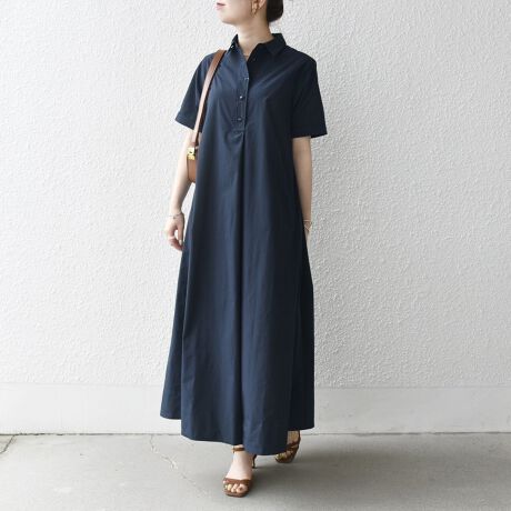 被りタイプでストレスフリーな着心地ながら、キレイ目な素材感とシャツカラーが清楚な印象に。