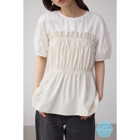 ■C/T撥水ビスチェドッキングトップス■ポイント機能性を兼ね備えた素材を使用しているので、暑い夏やアクティブなシーンで大活躍。撥水素材・UVカット・イージーケアの機能付き。※布帛部分がのみが機能素材となっています。■ディティールウエストが細く見えるビスチェデザイン。着丈を長めに設定しているので、細身のボトムスと合わせても安心して着用できます。袖は二の腕が気にならないパフスリーブデザイン。重ね着風のデザインなので、インナーにも困りません。■スタイリング同素材の250ISB31-517F C/T撥水タックワイドパンツ、250ISB31-518F C/T撥水バルーンギャザースカートと合わせるとモードなスタイリングが完成します。デニムに合わせてカジュアルに着こなすのもおすすめです。■生地カットソーには柔らかなタッチのT/C天竺を使用し、布帛には気流染めした平織りのポリエステルを使用しております。気流染めすることで、ナチュラルな表情になっております。機能性としては、撥水・UVカット・イージーケアを兼ね備えております。透け感:なし裏 地:なし伸縮性:若干光沢感:なし[注意事項]※画像の商品はサンプルです。実際の商品と仕様、加工が若干異なる場合があります。※画像の商品は光の照射や角度、お使いのモニター環境により、実物と色味が異なる場合がございます。※着用、お取り扱いの際は、アテンションタグをご確認ください。