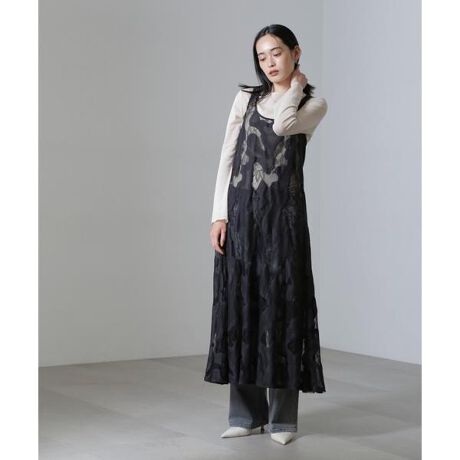 センシュアルなシースルーレース素材で仕立てたノースリーブドレス。合わせるアイテムによりカジュアルにもエレガンスにも着回せて、幅広いコーディネートを楽しめる逸品です。