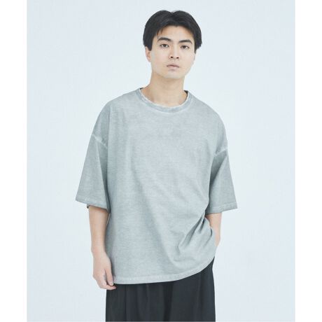 プレーンでオーバーサイズ、ダメージ加工を施した衿元が特徴的な主役級のTシャツ。あえて均等に染まらないよう陰影のあるムラを表現しています。主張がしっかりして個性的、厚手で型崩れしにくい度詰めの天竺を使用しています。