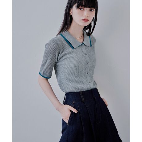 etoll. エトル 着回し力の高いサマーニットに、ほどよいシアー感と配色デザインでアクセントをプラス。