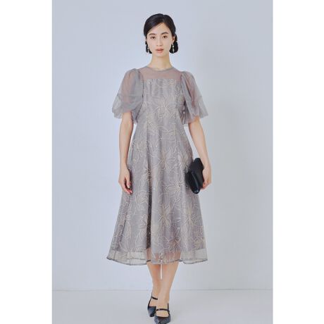 niana ニアナ ラメ糸で大胆な百合柄を刺繍したオケージョンドレス。