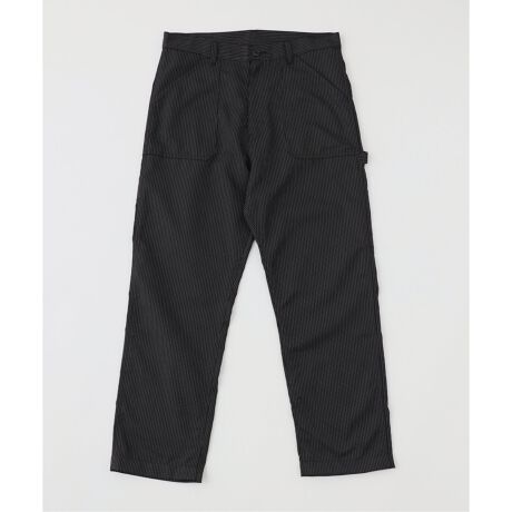 画家やペンキ塗りの職人が用いる作業パンツ、ペインターパンツをアップデート。あえてスーツに用いられるウール混のような質感を感じられるポリエステル・レーヨン素材を採用することでワーク的なアイテムをフォーマルに昇華させている。ワーク系アイテムの良い部分を残すため、ハンマーループ、ツールポケットのディテールは残している。