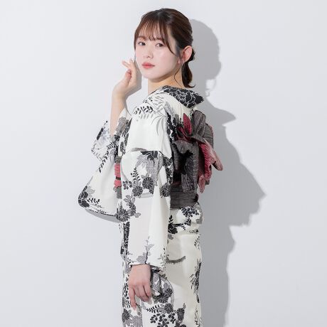 SOUBIENのプライベートブランド『floro by SOUBIEN』(フローロ)の浴衣を合わせた華やかな浴衣セットです。