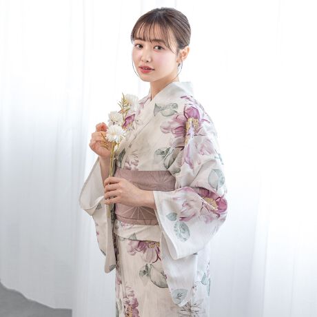 SOUBIENのプライベートブランド『floro by SOUBIEN』(フローロ)の浴衣を合わせた華やかな浴衣セットです。