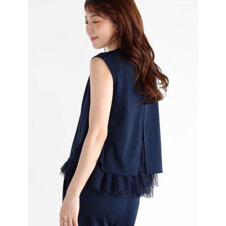裾から覗くチュールが大人フェミニンなノースリーブトップス。