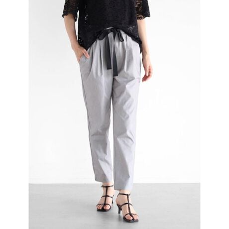 ウエストのグログランリボンがアクセントのテーパードパンツ。