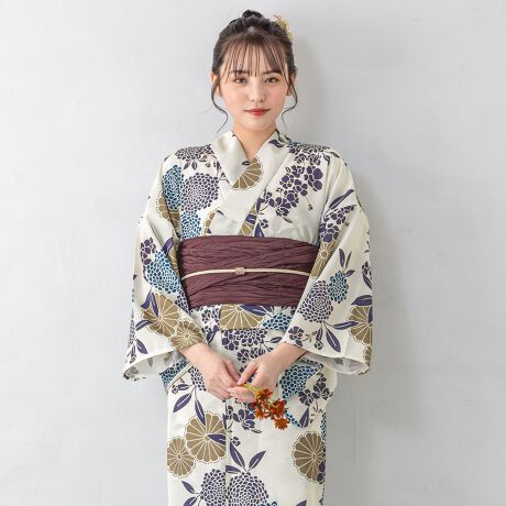 ※二部式浴衣(上衣・下衣・おはしょり布)・帯・伊達締めの3点セットです。セット内容の一部変更や、それに伴う値引きは承っておりません。