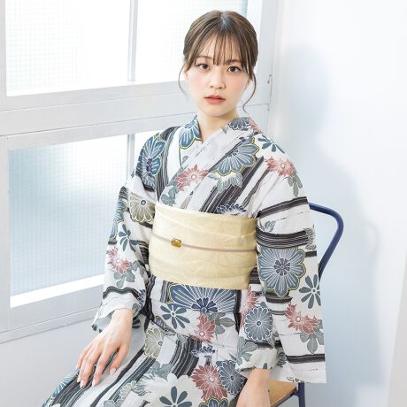 SOUBIENのプライベートブランド『floro by SOUBIEN』(フローロ)の浴衣を合わせた華やかな浴衣セットです。