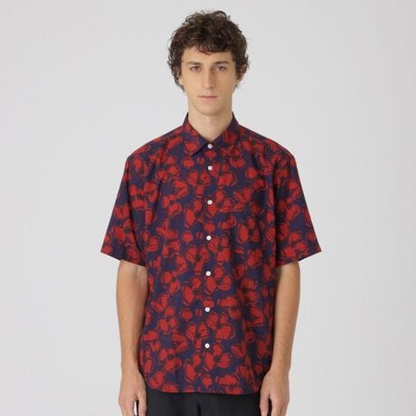 全面に英国伝統のリバティプリントの花柄をあしらったハーフスリーブシャツです。英国リバティ社が保有する花柄プリントをブラックレーベルオリジナルのカラーリングで作成しました。まるで大輪の花が生地の上を躍動するようなエネルギッシュな柄が特徴です。