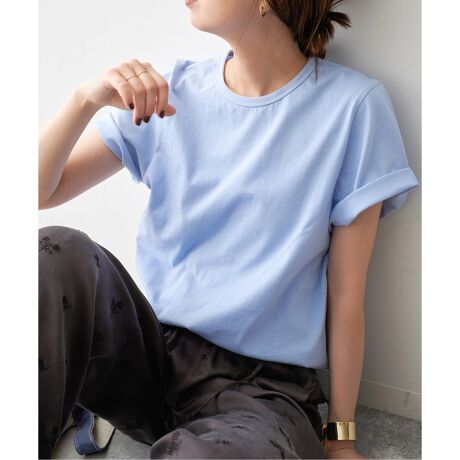 程よく詰まったネックラインと短めの袖丈が、すっきりとしたバランスをつくり、一枚でも様になる大人のTシャツに仕上がっています。