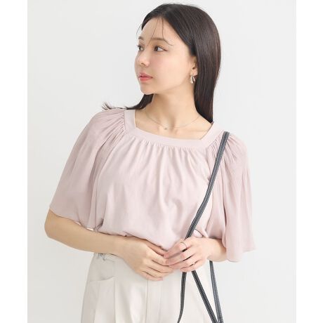 マジョリカプリーツを施したフレア袖がキュートなカットプルオーバー。すっきりとしたスクエアネックがデコルテラインを美しく魅せてくれます。肌触りの良いコットン100%素材にシアー布帛をジョイントした軽やかな着用感も魅力的。締め付けのないAラインシルエットでボディラインを拾わないのも嬉しいポイントです。透け感[ややあり]