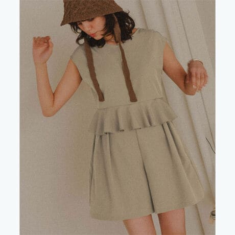 ・服っぽくカジュアルにスタイリングできるロンパースデザインのワンピース水着。