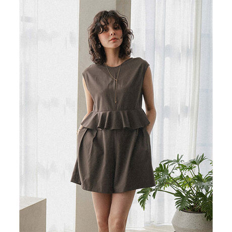 ・ウエストのペプラムフレアで大人可愛く、リゾート映えする1着です。