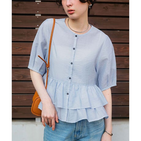 ・上品な、程よく張り感のあるシアー素材で、軽やかな印象のブラウス。・袖はランタンスリーブで、丸みのあるレディな印象に。・ペプラム切り替えのフリルで、スタイルアップ効果も◎・丈感とバランスにこだわったブラウスです。[型番:AFXP4342]