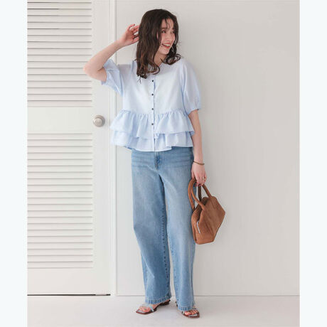 ・上品な、程よく張り感のあるシアー素材で、軽やかな印象のブラウス。・袖はランタンスリーブで、丸みのあるレディな印象に。・ペプラム切り替えのフリルで、スタイルアップ効果も◎・丈感とバランスにこだわったブラウスです。[型番:AFXP4342]