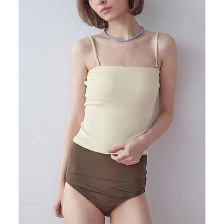 ・バンドゥの内側に滑り止め仕様を施し、肩紐を取り外しても安心して着用いただけます。カップ付きインナーとしても使える便利なトップス。