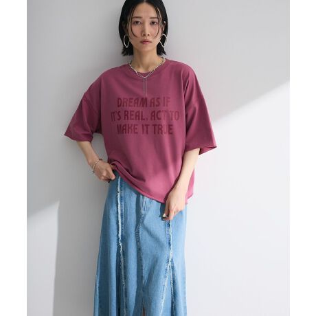 ミニ裏毛素材×ロゴプリントがカジュアル感溢れるTシャツ。ドロップ肩にワイドなオーバーシルエットがトレンドライクなデザインです。袖口とヘムラインには飾りステッチで洒落感あるアクセントをプラス。さらっと一枚着るだけでこなれ感のあるスタイリングが決まるおすすめのトップスです。生地の厚さ[普通]