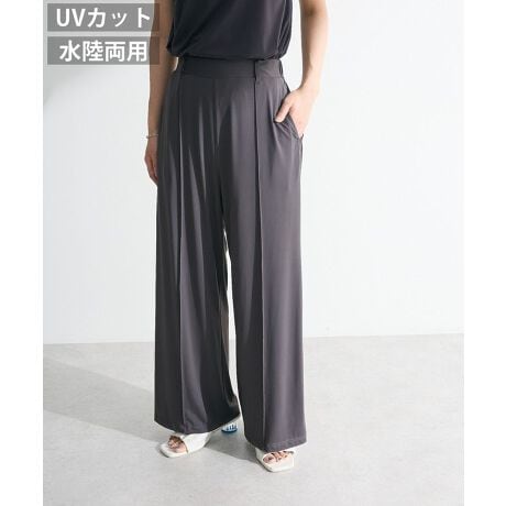 サマーシーズンに欠かせない接触冷感素材のラッシュガードパンツ。センタータックを加えたワイドシルエットですっきりと着こなしていただけます。紫外線から肌を守ってくれるUVカット仕様に加え、水に濡れても乾きやすいドライタッチな肌触りも魅力的。デイリーからレジャーまで幅広いシーンで活躍してくれる汎用性の高いアイテムです。同素材のトップスもおすすめ。透け感[なし]