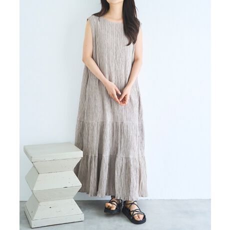 表面感のある楊柳素材が、大人の余裕を感じさせるティアードワンピースが登場。